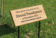 A substantial wooden plaque mounted on strong steel stakes, stakes angled to suit ease of reading once installed.